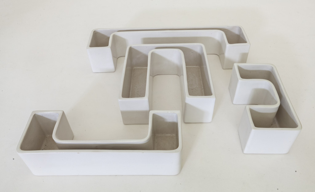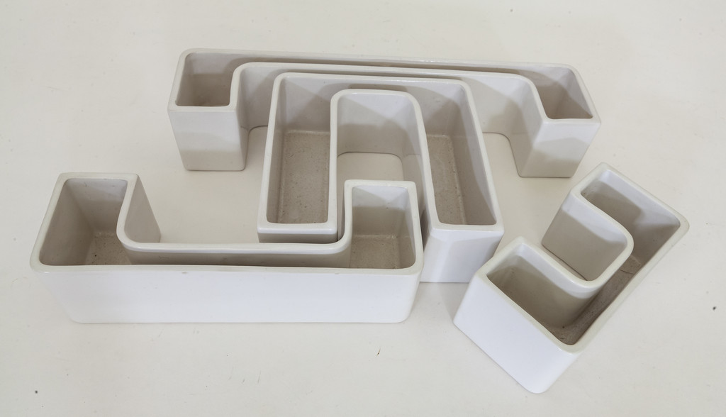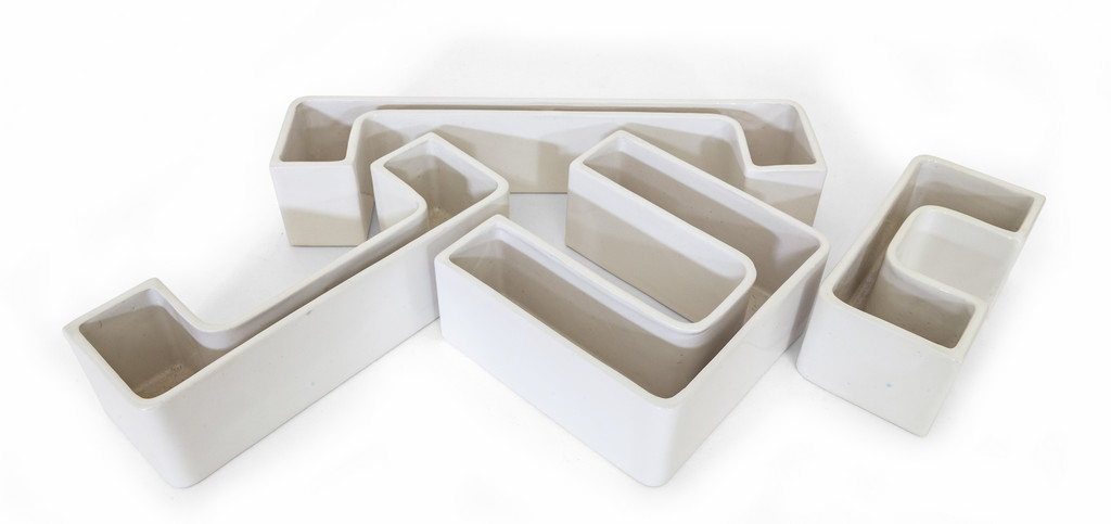 Ceramica formata a stampo e smaltata. Tutti i pezi marcati 'Danese Milano Des. Mangiarotti Made in Italy'.
