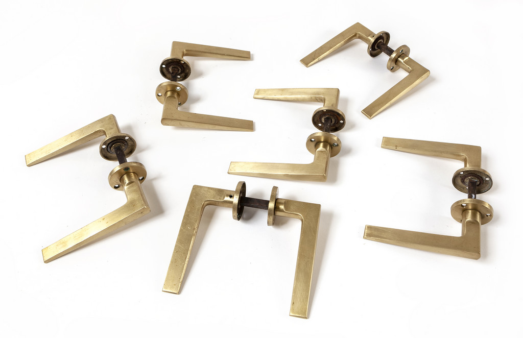 SEI COPPIE DI MANIGLIE, anni "60. <br>Ottone