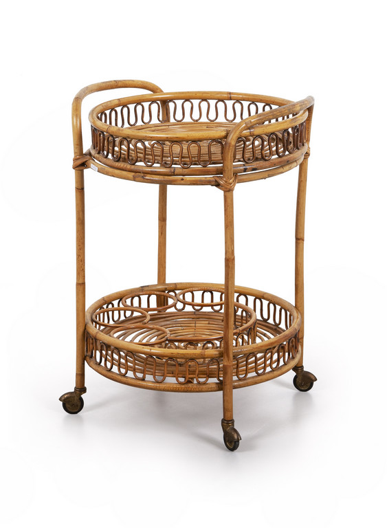 UN CARRELLO-BAR, anni "60. <br>Bambù, giunco.