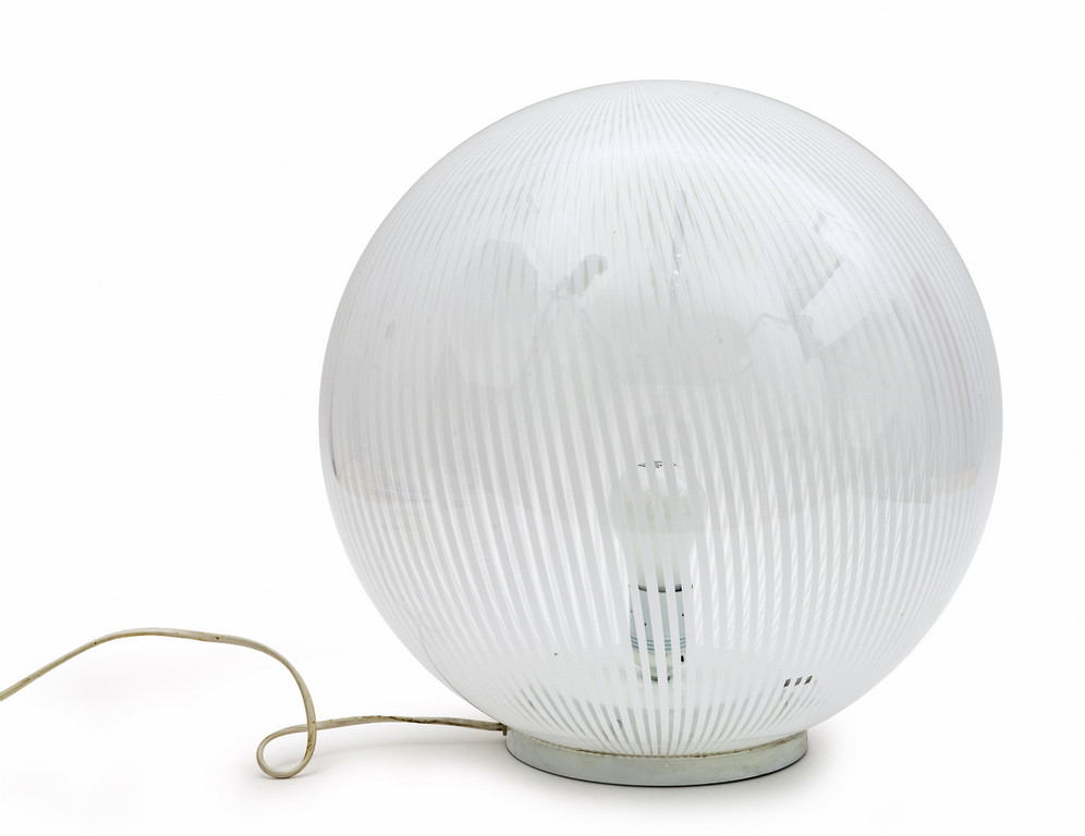 Una lampada da tavolo con diffusore sferico in vetro "Tessuto" per VENINI, circa 1970.
