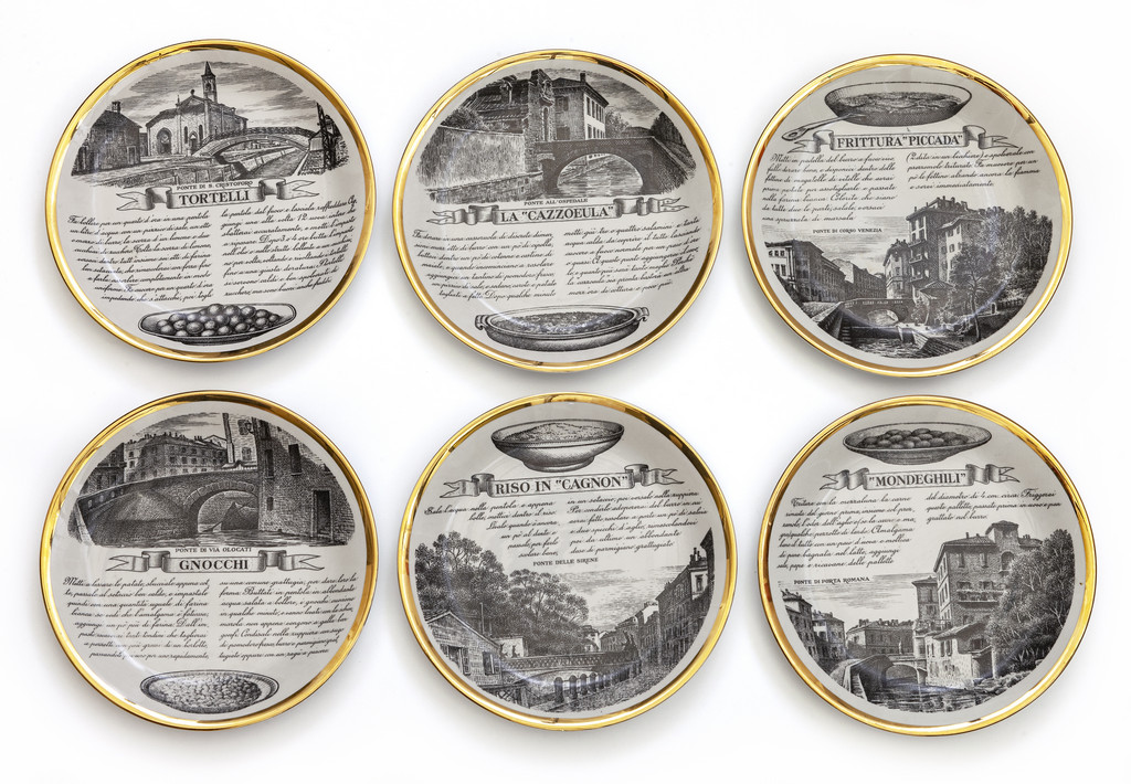 Sei piatti della serie "Specialità milanesi", anni "60.
