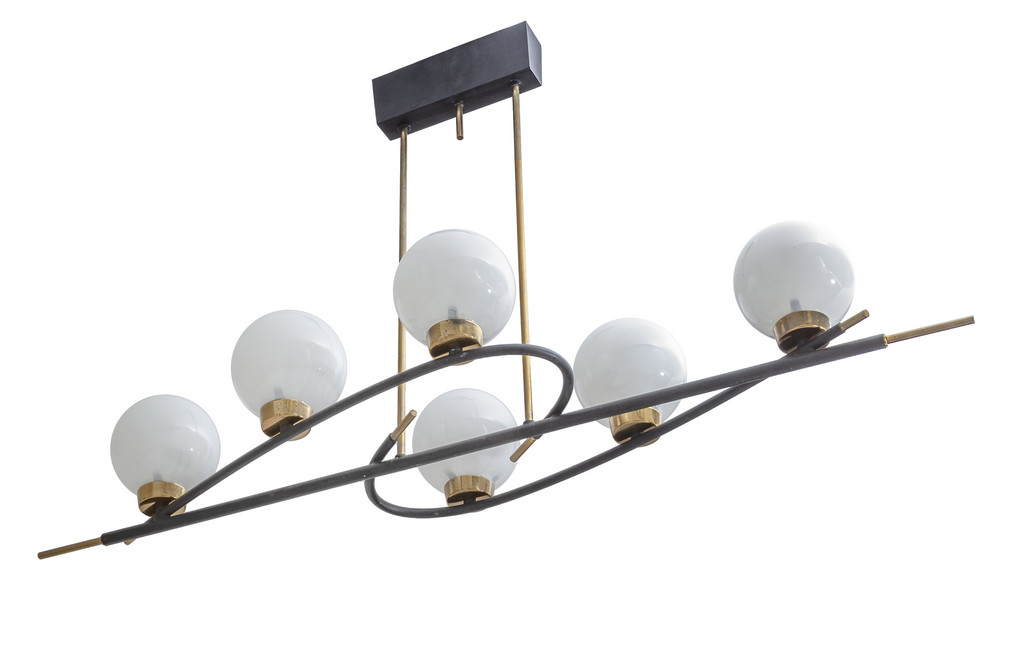 Ottone, acciaio verniciato, vetro opalino.