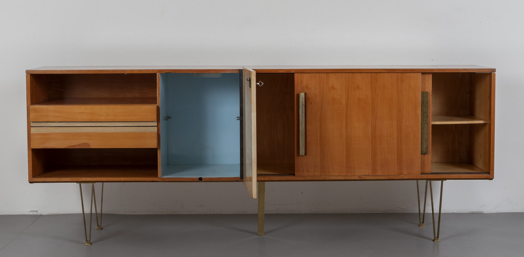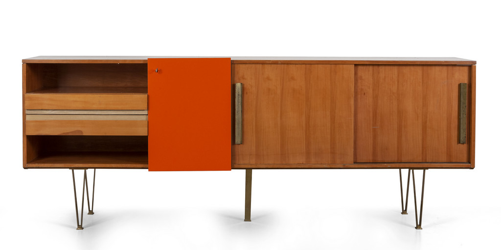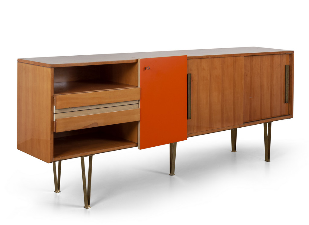 UNA CREDENZA, anni "60. <br>Legno impiallacciato