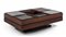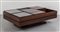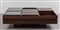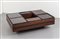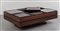 Legno impiallacciato in palissandro, dotato di 7 scomparti con 6 coperchi, di cui 2 in cristallo e 4 reversibili impiallacciati in palissandro e in laminato.