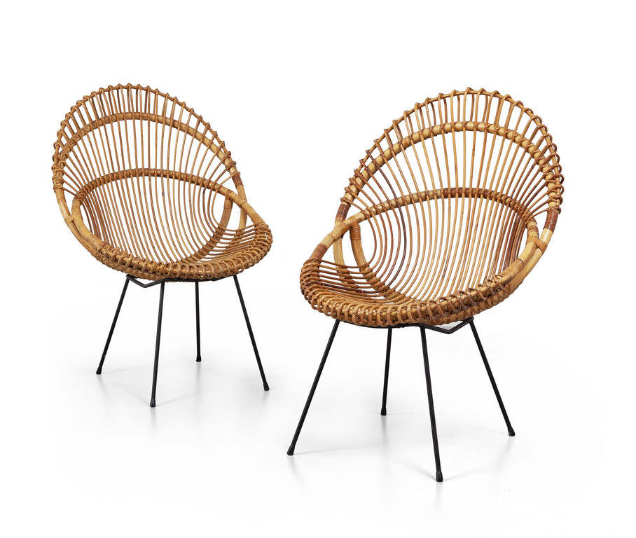 Tondino di acciaio verniciato, malacca, giunco e canna d"India.