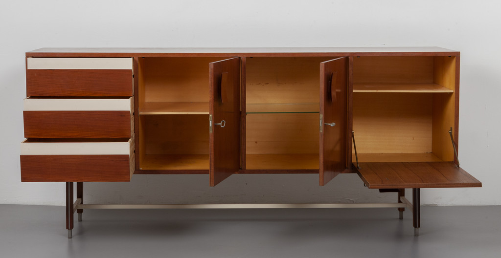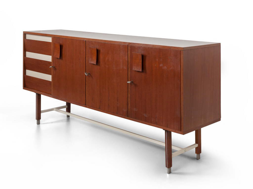 UNA CREDENZA, anni "60. <br>Legno di teak, legno