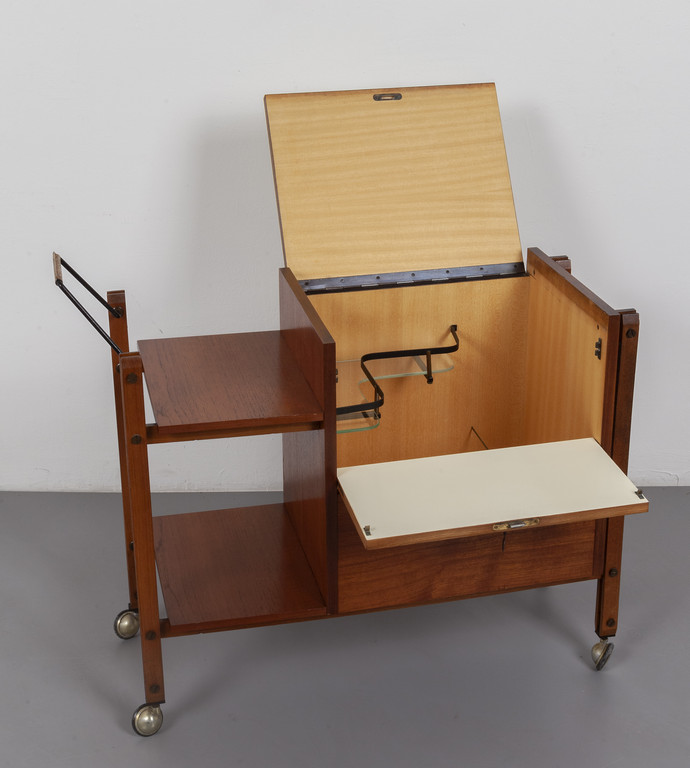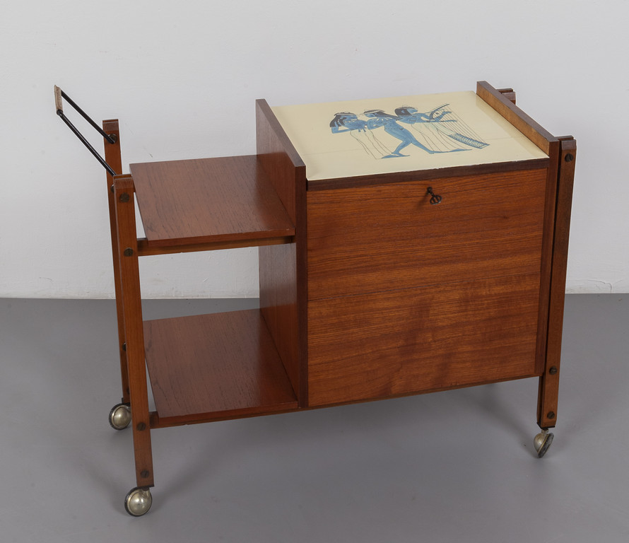 UN CARRELLO-BAR, anni "60. <br>Legno di teak,