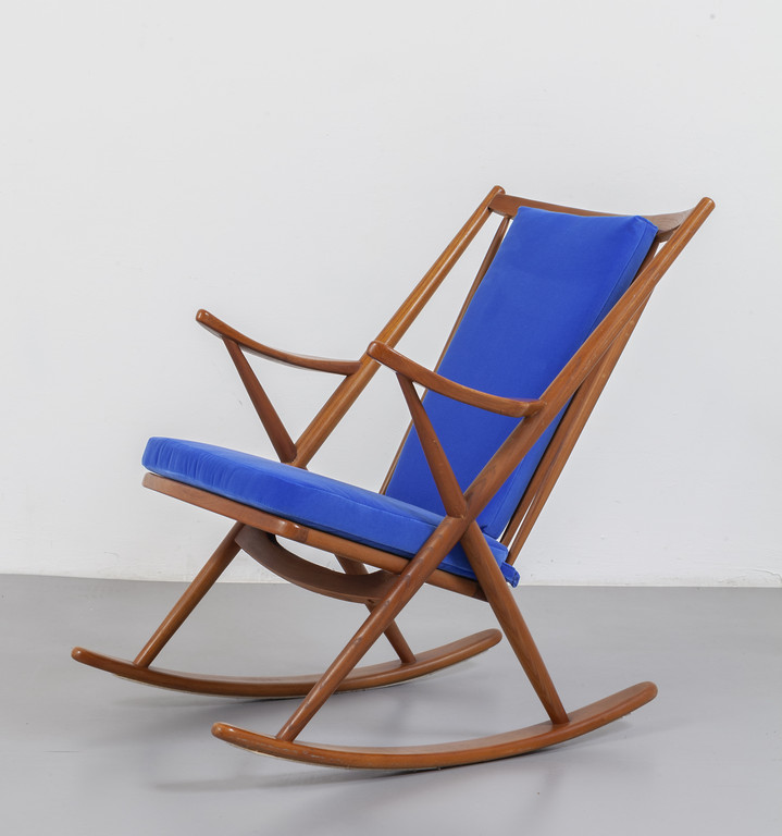 Lotto 3538 | UNA SEDIA A DONDOLO, anni "60. <br>Legno di