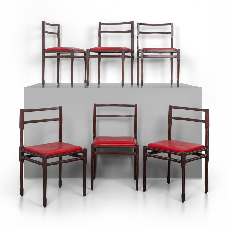 Lotto 3557 | SEI SEDIE, anni '60. <br>Legno tinto all'anilina,