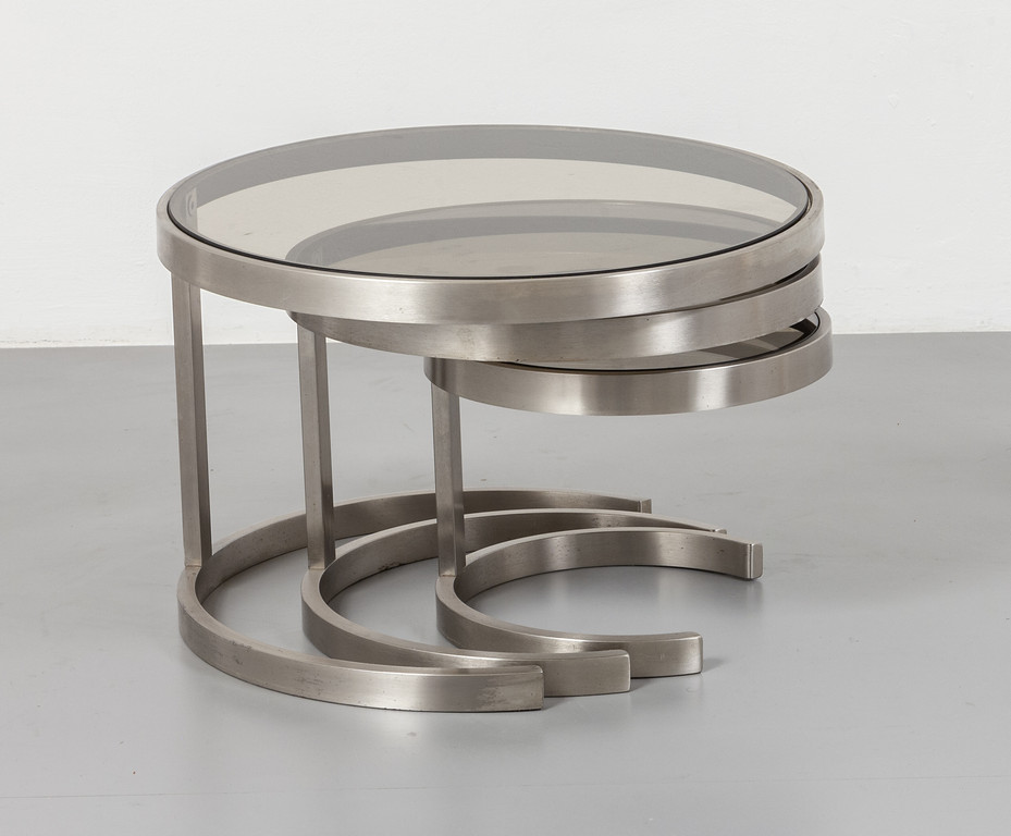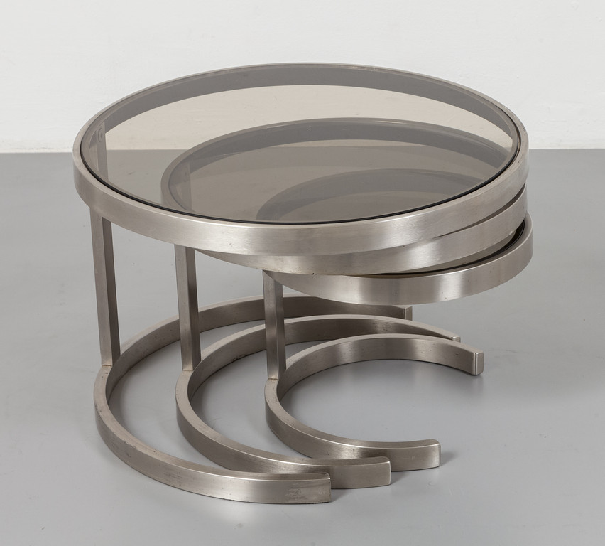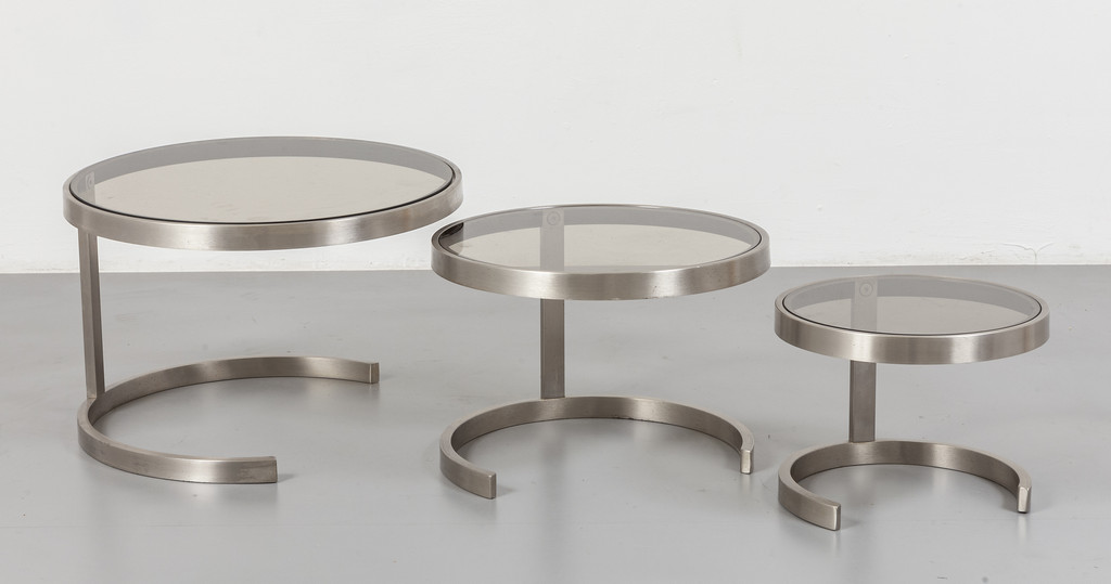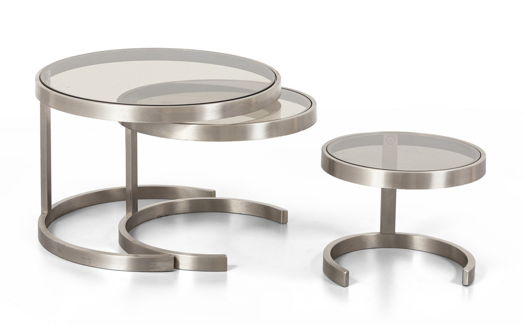 TRE TAVOLINI COMPONIBILI, anni "70. <br>Acciaio