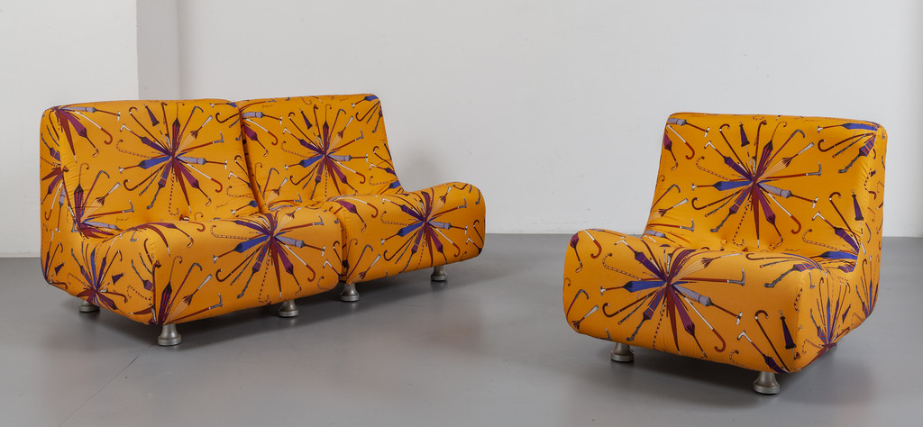 TRE POLTRONE, anni "70. <br>Strutture in legno,