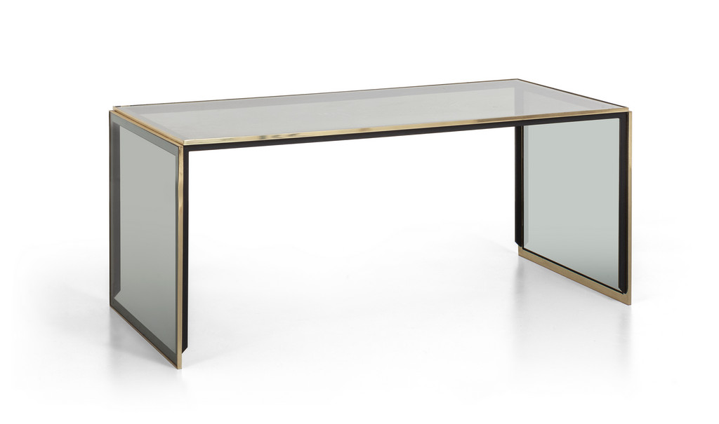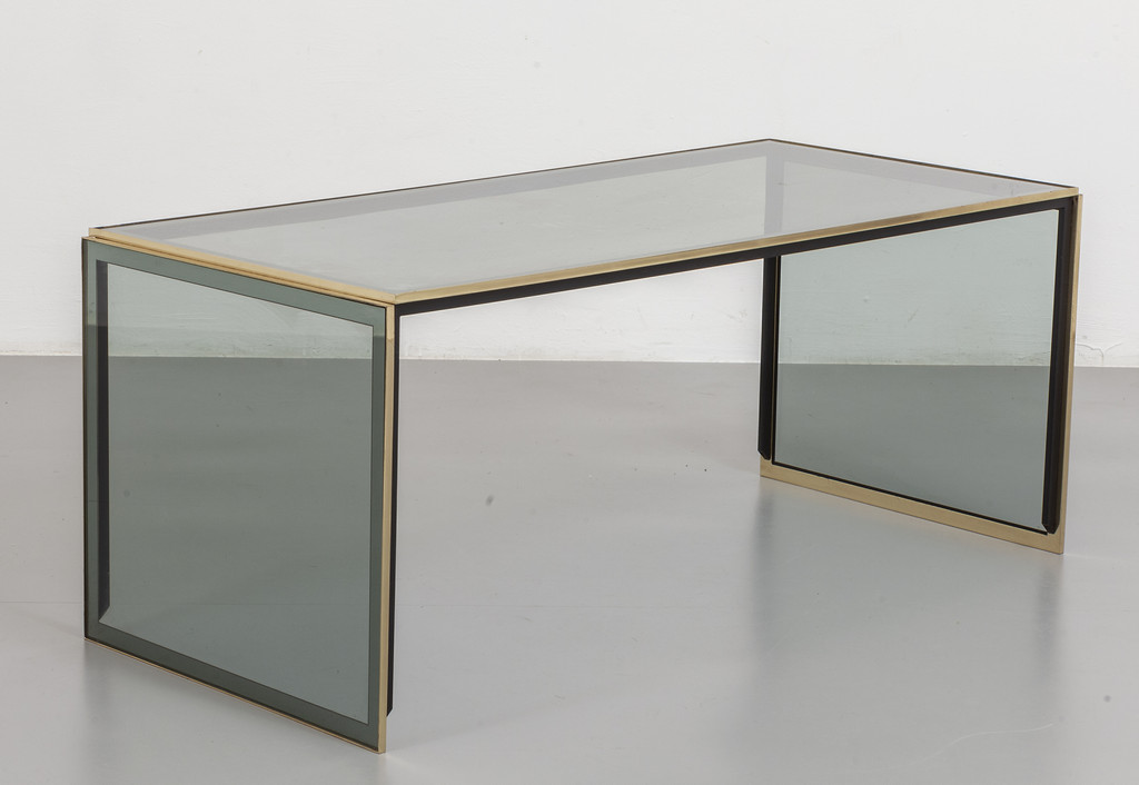 UN TAVOLINO, anni "70. <br>Ottone, cristallo