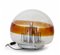 Acciaio cromato, vetro cristallo a bollicine soffiato con fascia ambra.