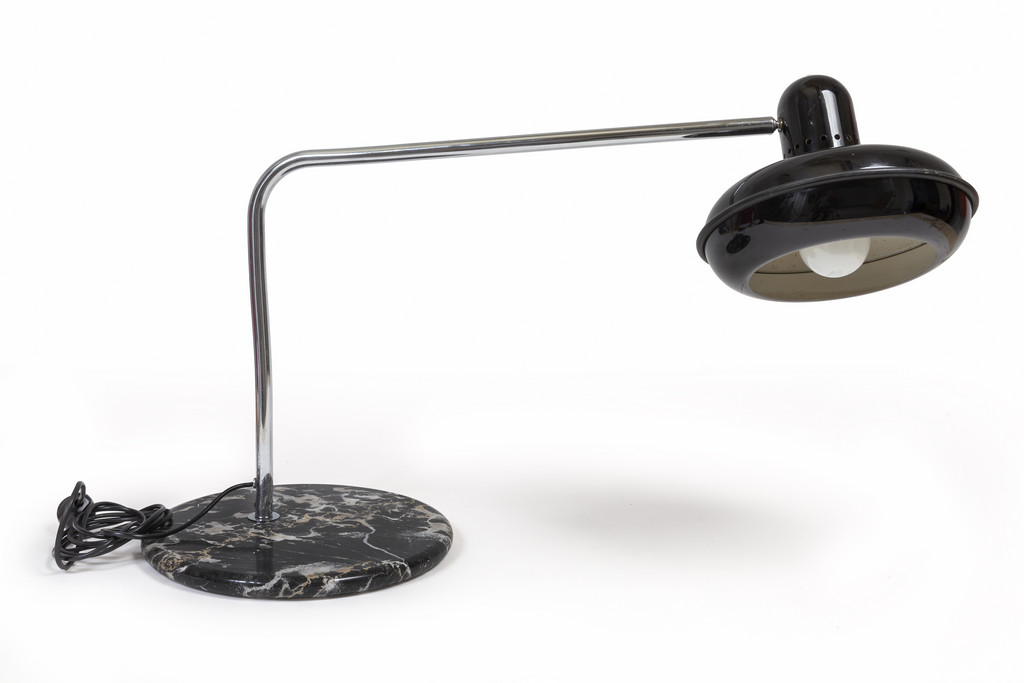 Marmo Portoro, ottone cromato, acciaio verniciato.