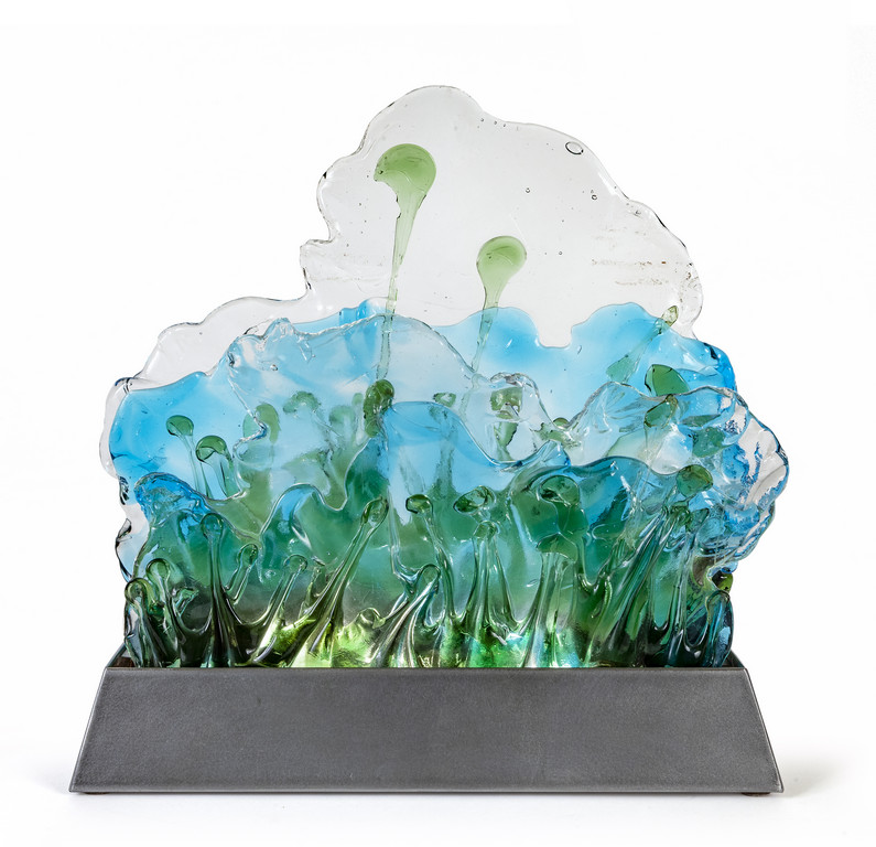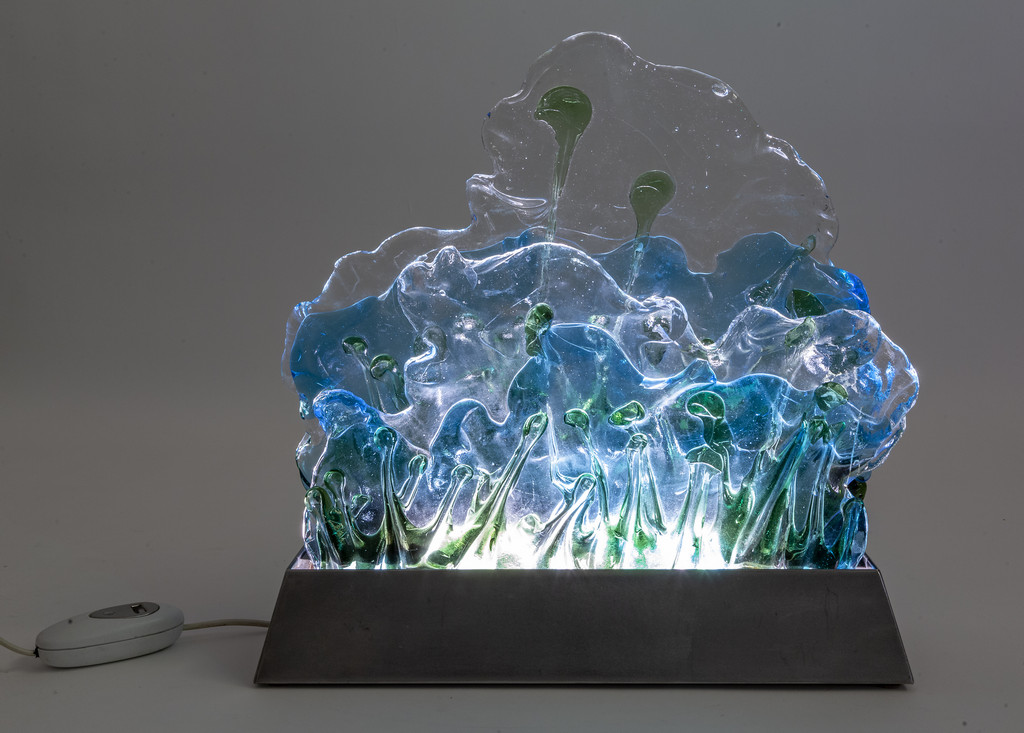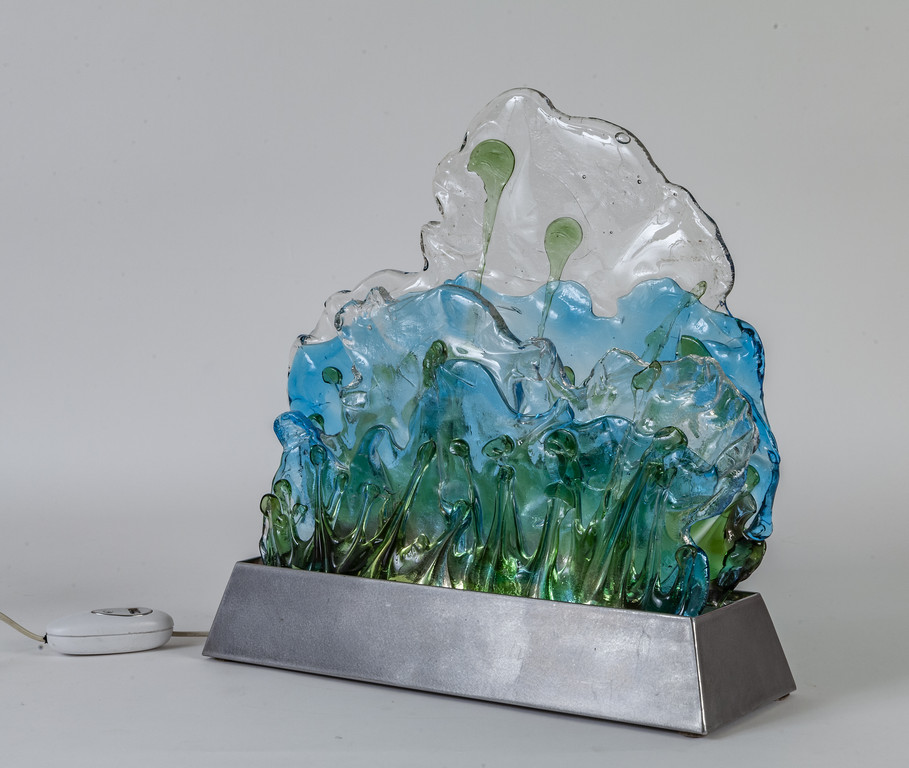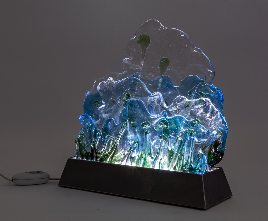 Acciaio nichelato, lastre di vetro lavorate a mano.