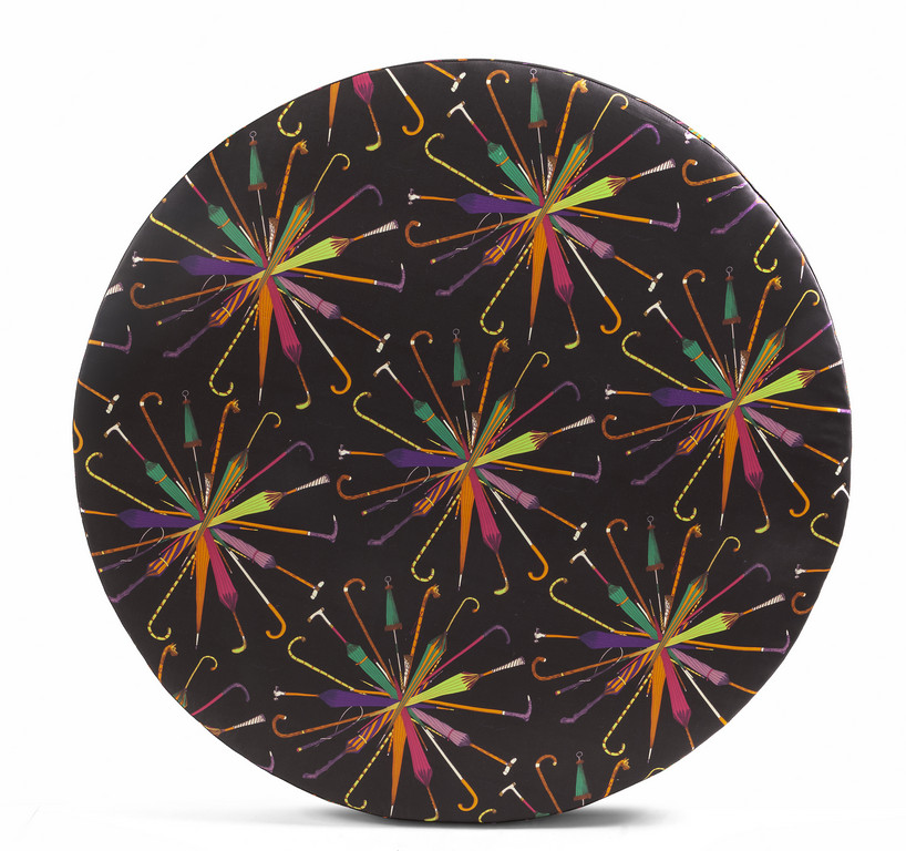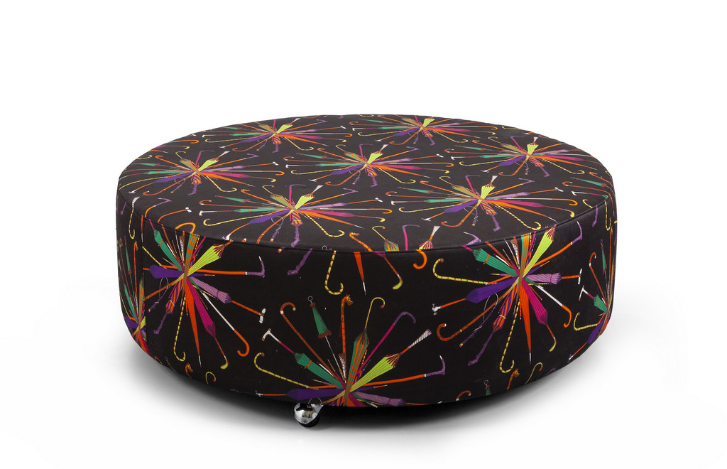Struttura in legno, rivestimento in tessuto di Fornasetti.