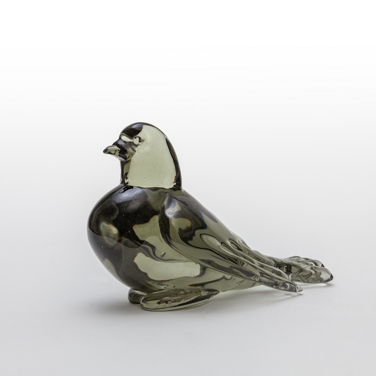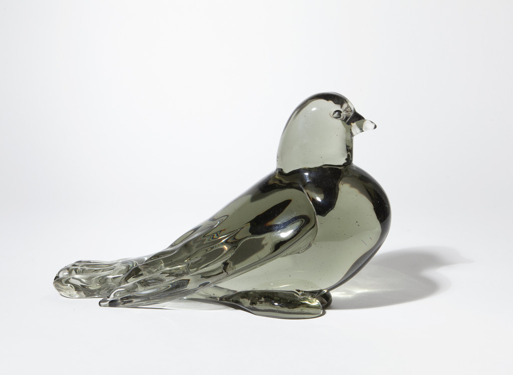 Una figura di piccione in vetro massiccio grigio talpa leggermente sfumato, ca 1950