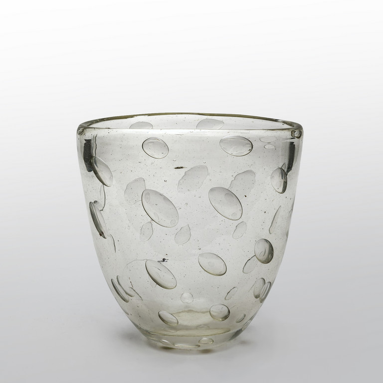 Un vaso "superbolle" in vetro trasparente a sezione ovoidale con incluse grandi bolle, 1942