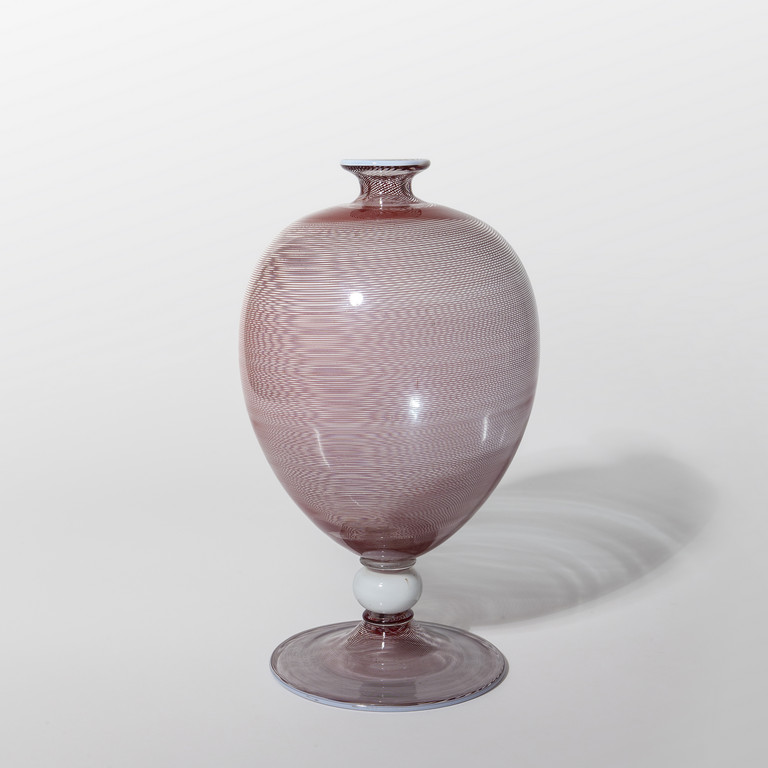 Un vaso "veronese" in vetro a filigrana ametista con bordo piede, bordo collo e bulbo