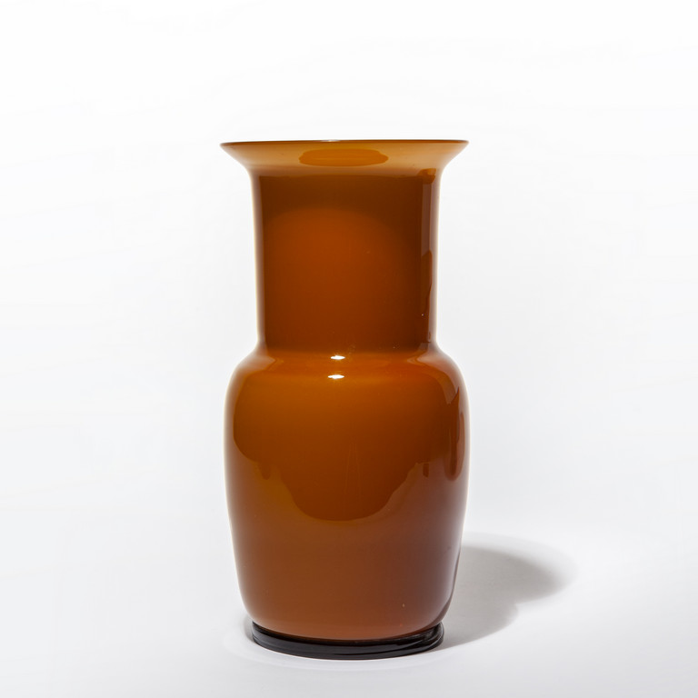 Un vaso in vetro incamiciato color tabacco, circa 1952