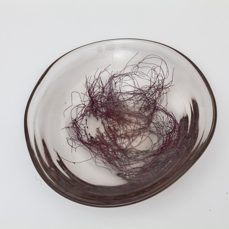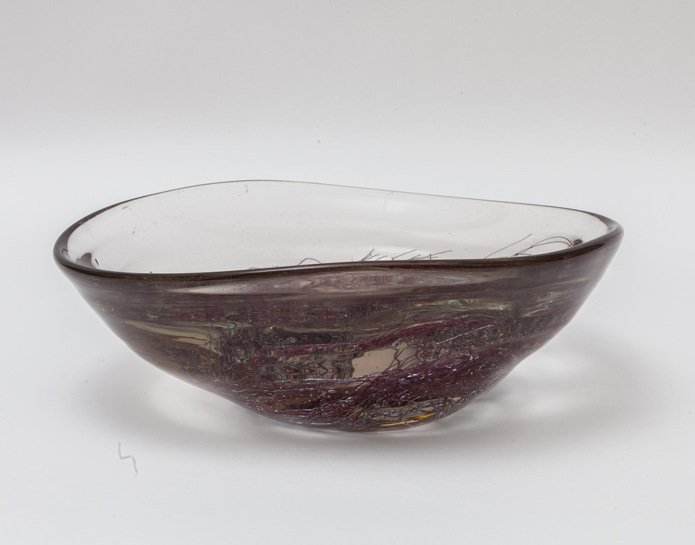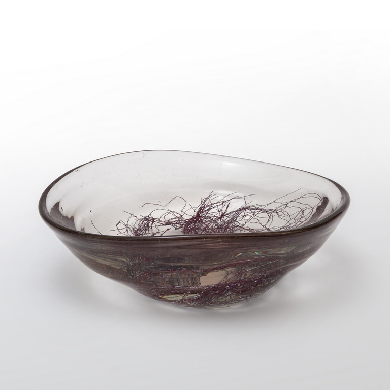 Una coppa della serie "grovigli" in vetro cristallo di grosso spessore con decoro di filamenti