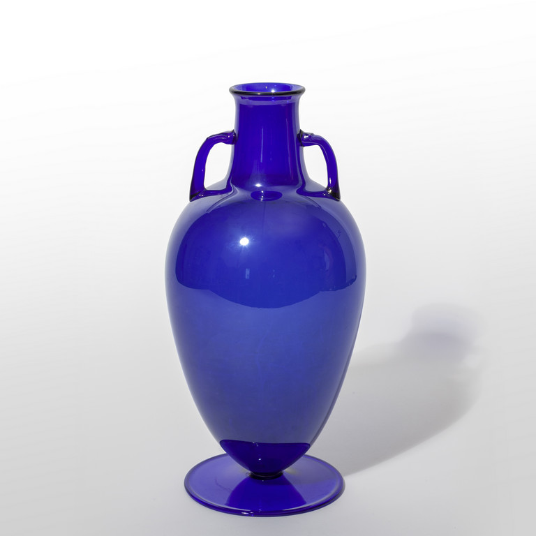Un vaso ad anfora in vetro blu iridato, c. 1925.