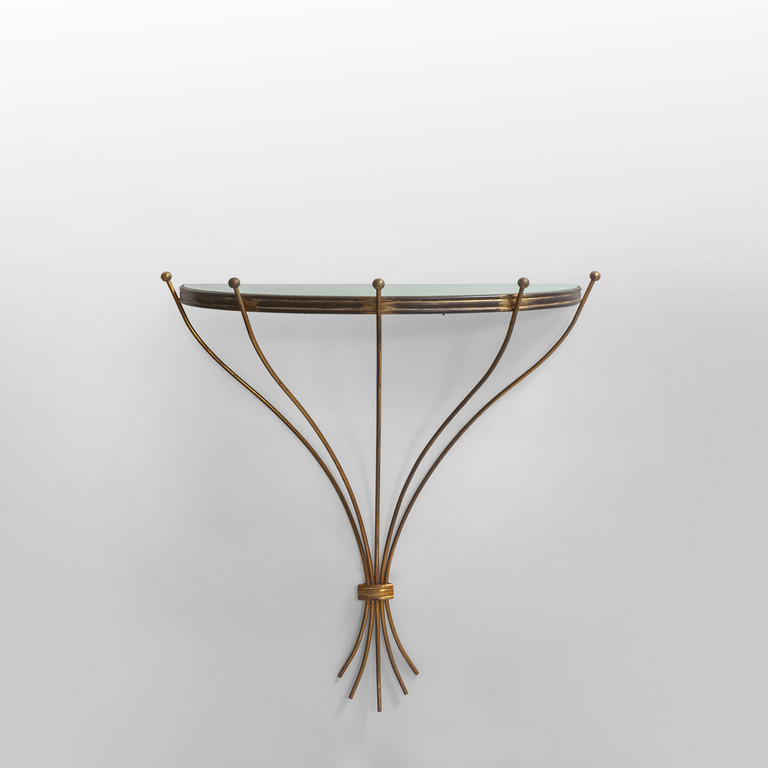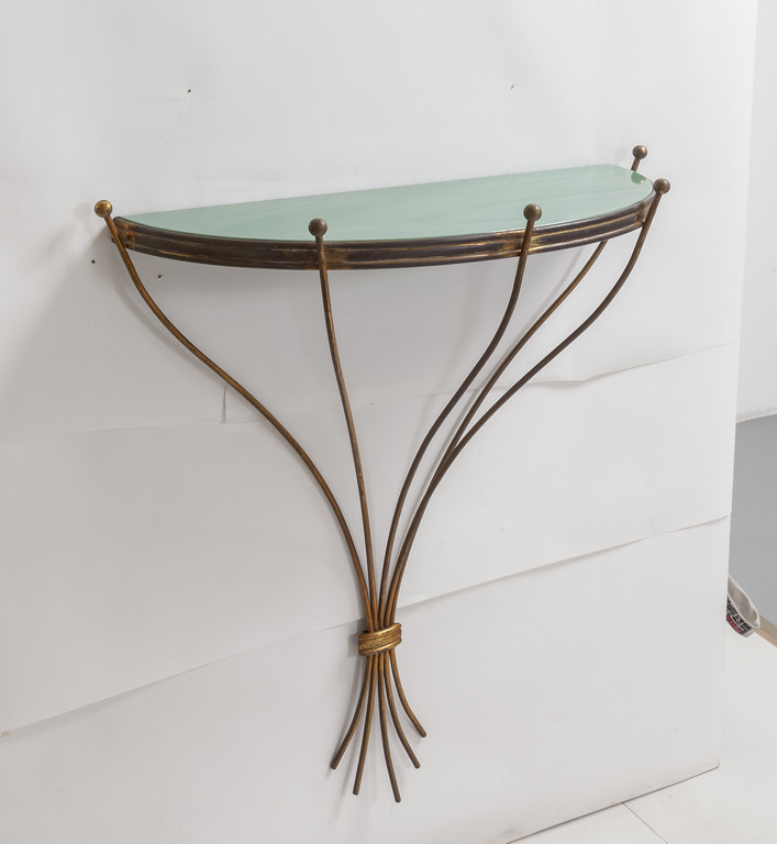 UNA CONSOLE, anni "50. <br>Ottone, opalina