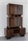Walnut veneered wood with crystal sliding doors, and Manufacturer's label.