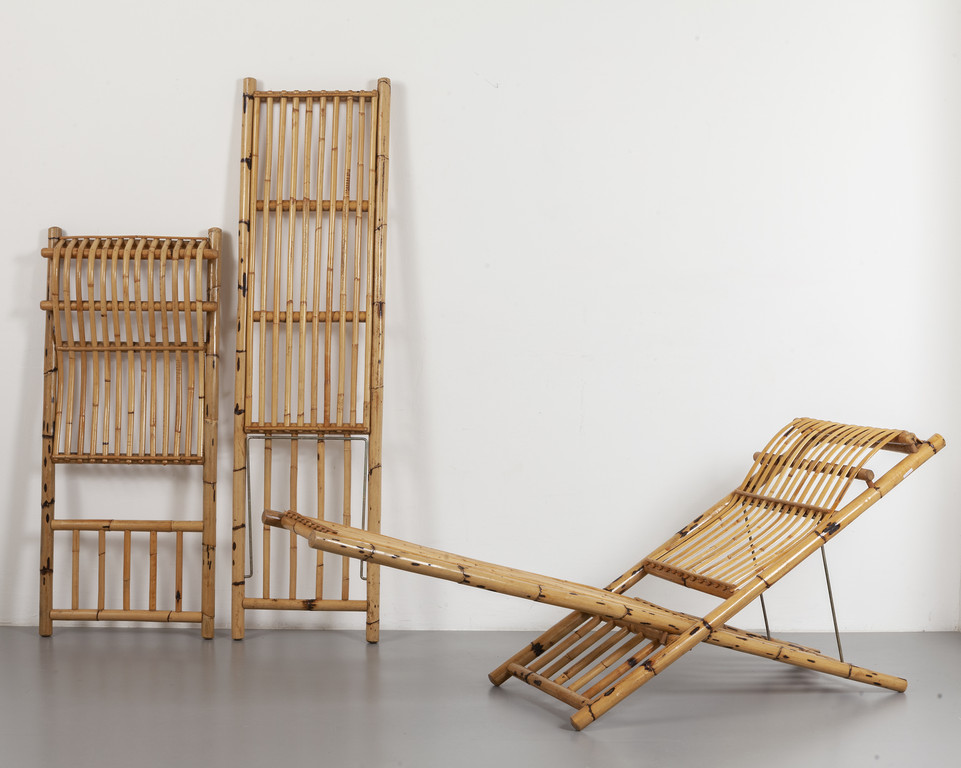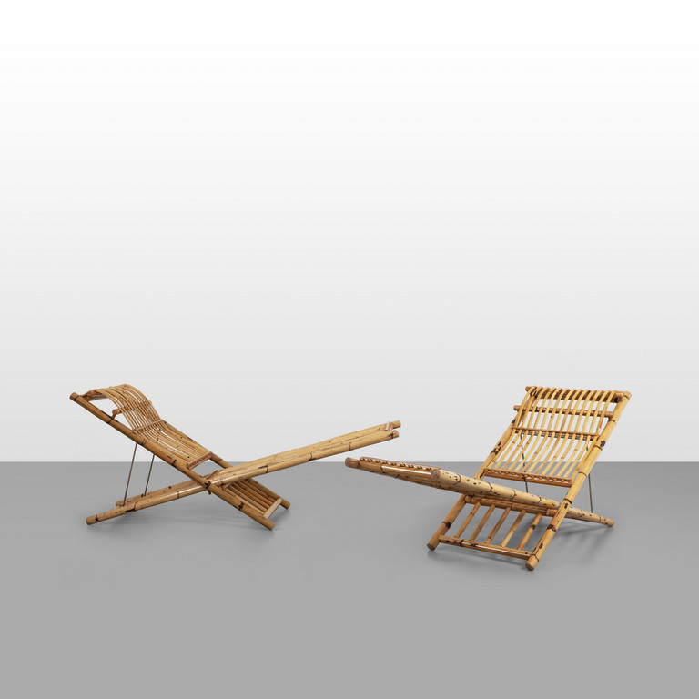 DUE CHAISES-LONGUES, anni "60. <br>Malacca,