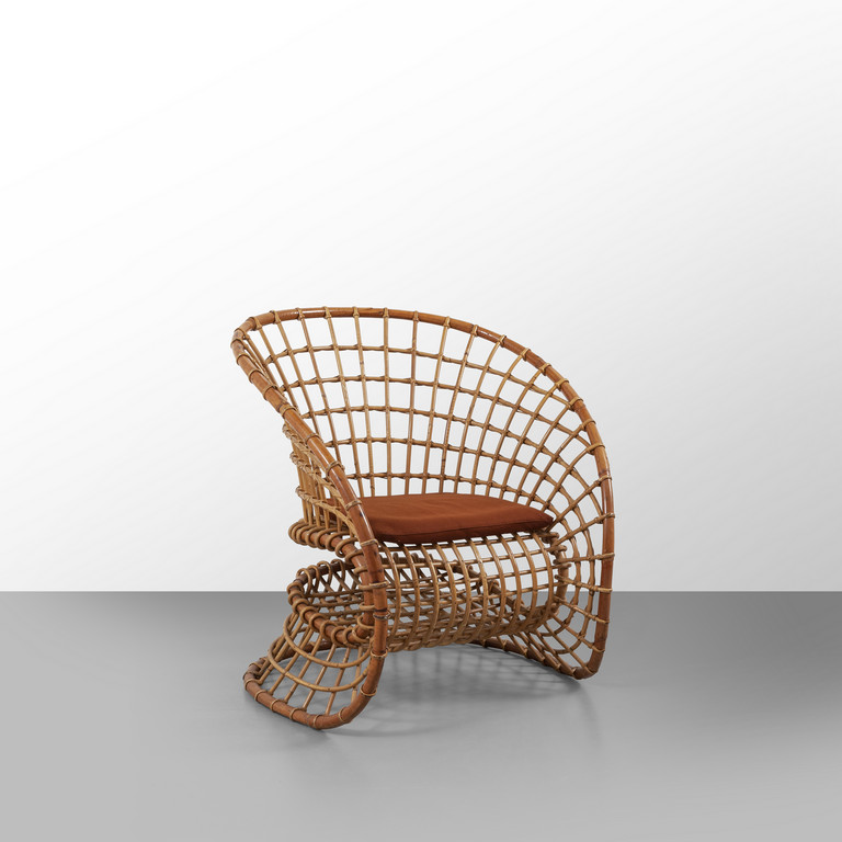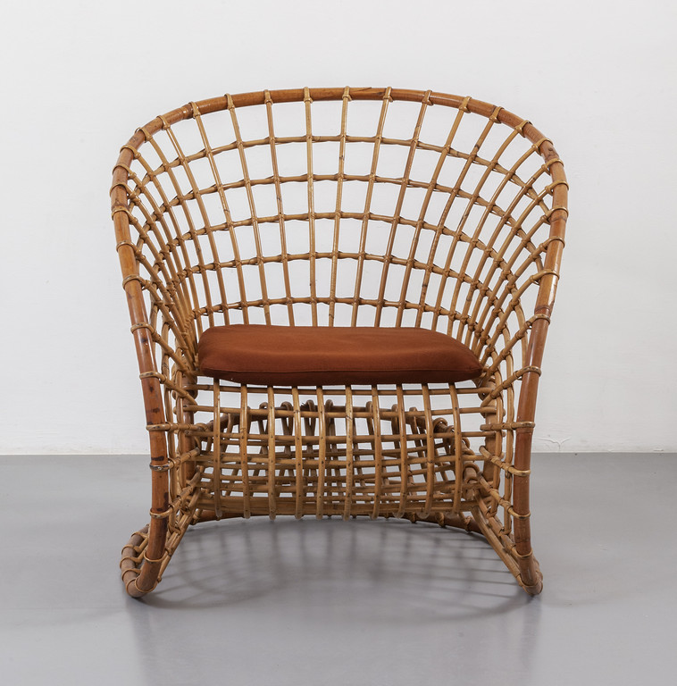 UNA POLTRONA, anni "60. <br>Bambù, giunco e canna