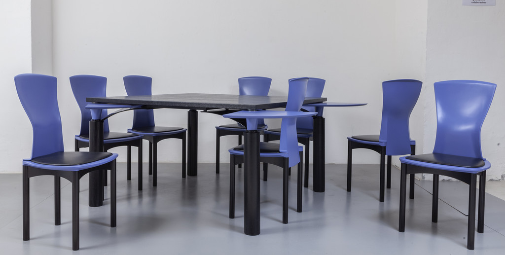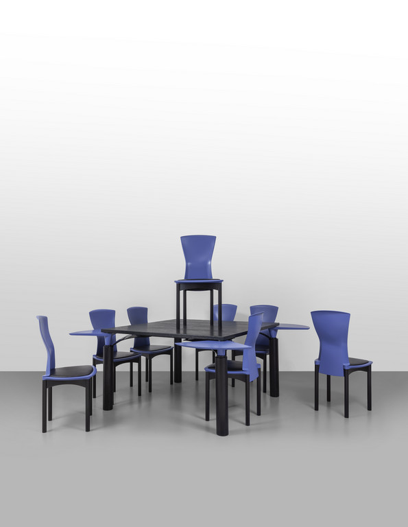 Un tavolo e otto sedie della serie "Lom" per CASSINA, 1990.