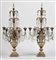 Coppia di girandoles a cinque fiamme. Legno intagliato, laccato e cristalli...