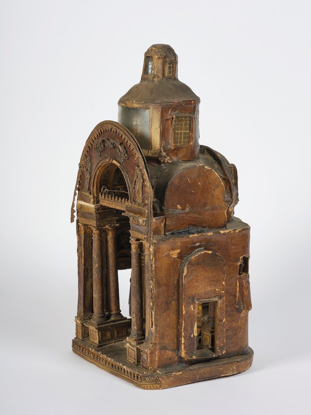 Interno di chiesa barocca. Modellino in papier machè dipinto e dorato. XVIII...