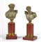 Busto maschile e busto femminile. Bronzo patinato. Fonditore neoclassico del XIX-XX secolo. Gladenbeck und Sohn, Berlino Poggianti su basamento cilindrico in diaspro rosso, H. 22 cm