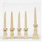 Cinque obelischi Italia centrale, primo quarto del XIX secolo Terraglia color crema. Marca: assente. Altezza cm 30,5 e cm 27 circa. Conservazione: ottima, minime insignificanti sbeccature; uno degli obelischi piccoli rotto in più frammenti e ricomposto in vecchio restauro, , Cinque obelischi, di due dimensioni, decorati con geroglifici egizi retti da quattro piccoli leoni su alte basi cubiche in terraglia. Mostrano una somiglianza, nella presenza dei leoni angolari, con il celebre obelisco Vaticano di Piazza San Pietro , Gli obelischi erano spesso usati alla decorazione delle raffinate imbandigioni in stile neoclassico