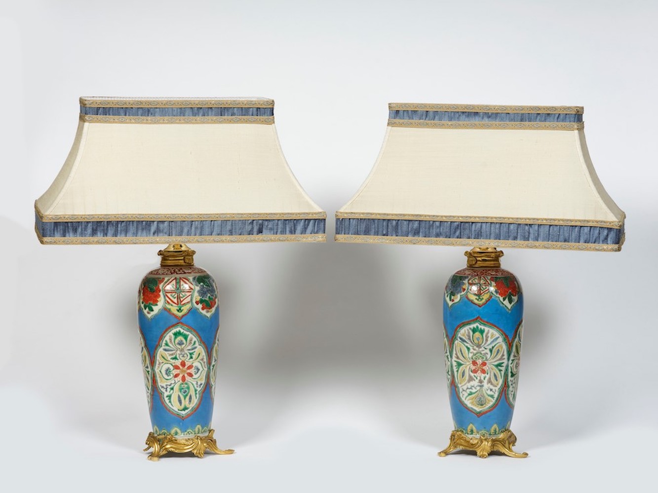 Coppia di vasi in porcellana nei colori della Famiglia Verde con decori floreali su fondo azzurro, Cina, Dinastia Qing, XIX secolo H. 32 cm, Antichità Maurizio Nobile, Bologna