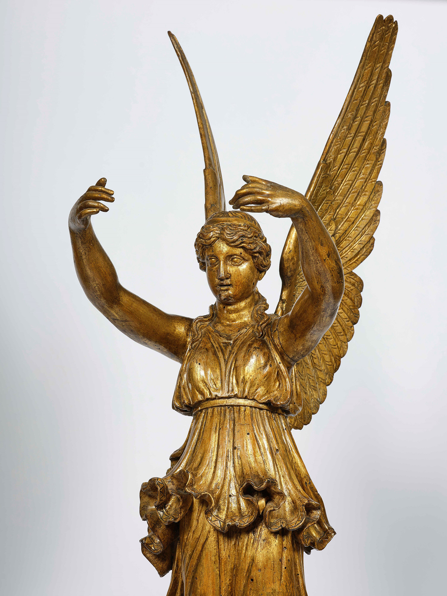 Coppia di Vittorie Alate. Legno scolpito e dorato. Arte neoclassica italiana...