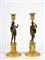 Coppia di candelieri. Bronzo fuso, cesellato, patinato e dorato. Fonditore...