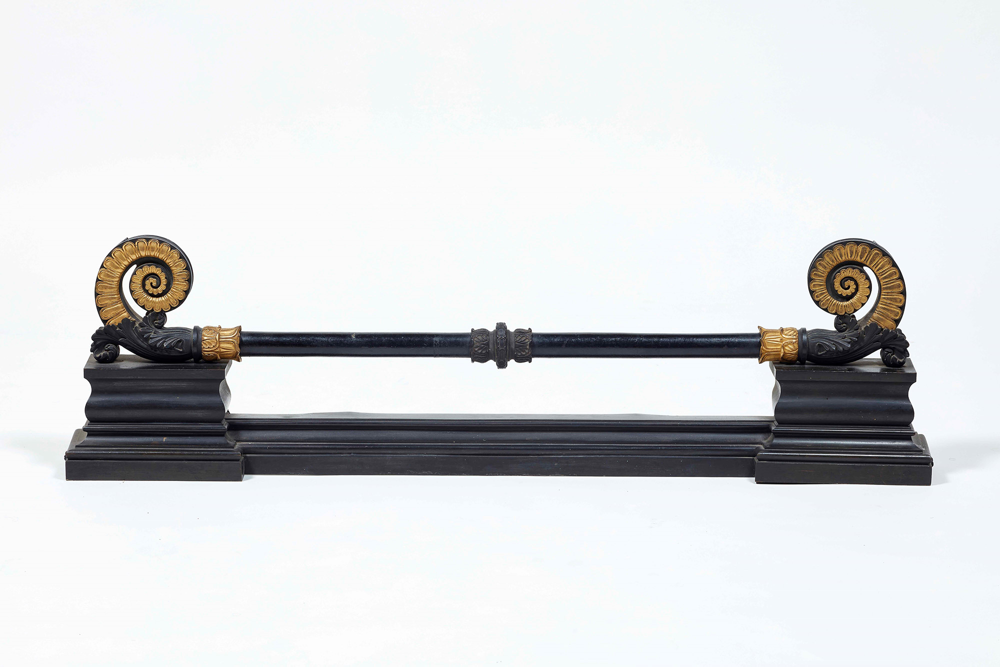 Alare da camino in bronzo patinato e dorato. XIX secolo W. 105,5 - D. 46 - H. 30 cm