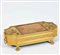 Calamaio in bronzo e metallo dorato e cesellato. XIX secolo A forma di urna con piedi e teste leonine, coperchio in tessuto, boccette in vetro, W. 23 - D. 11 - H. 6,5 cm