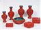 Lotto 132 | Gruppo di oggetti in lacca rossa con decori floreali e figure di fenici,...