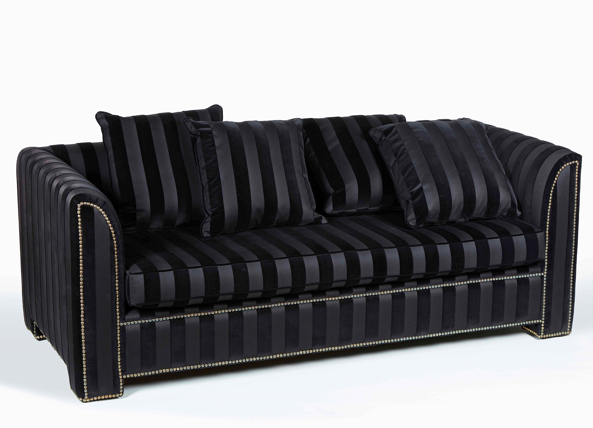 Coppia di divani in velluto di seta con ornamento di borchie. XX secolo Largh. 185 - Prof. 70 - Alt. 83 cm