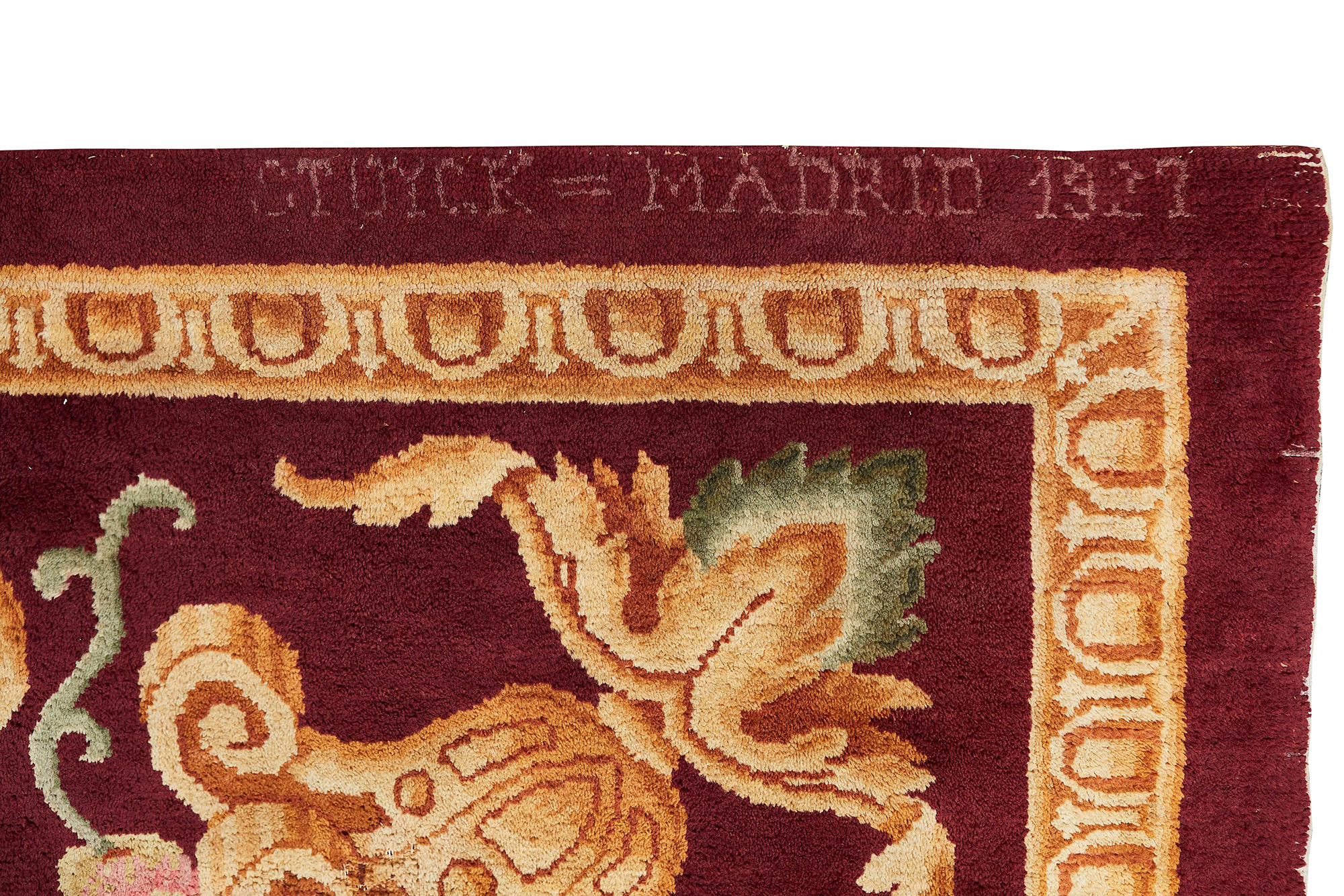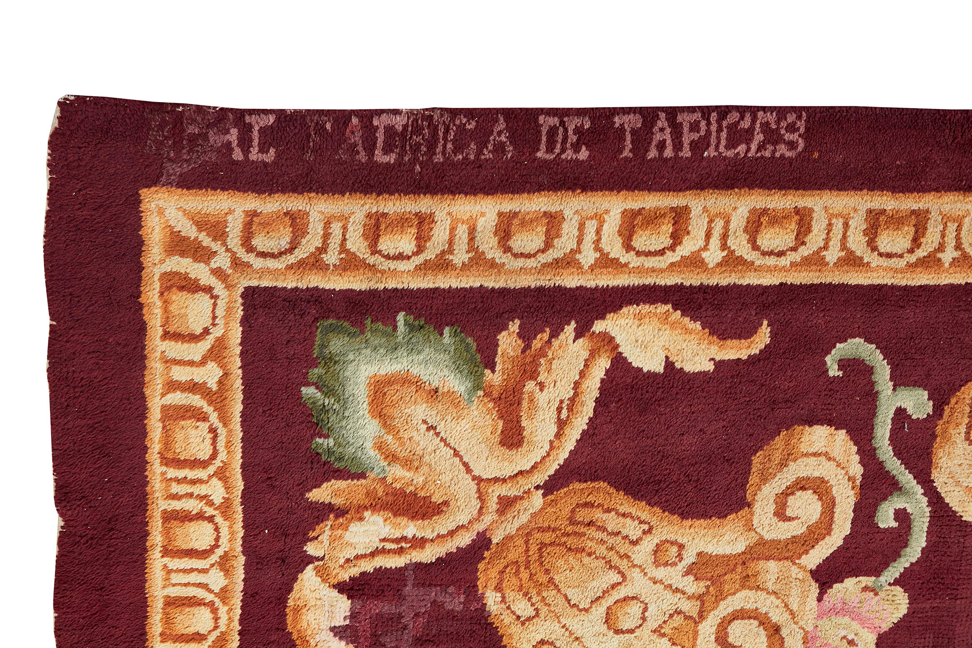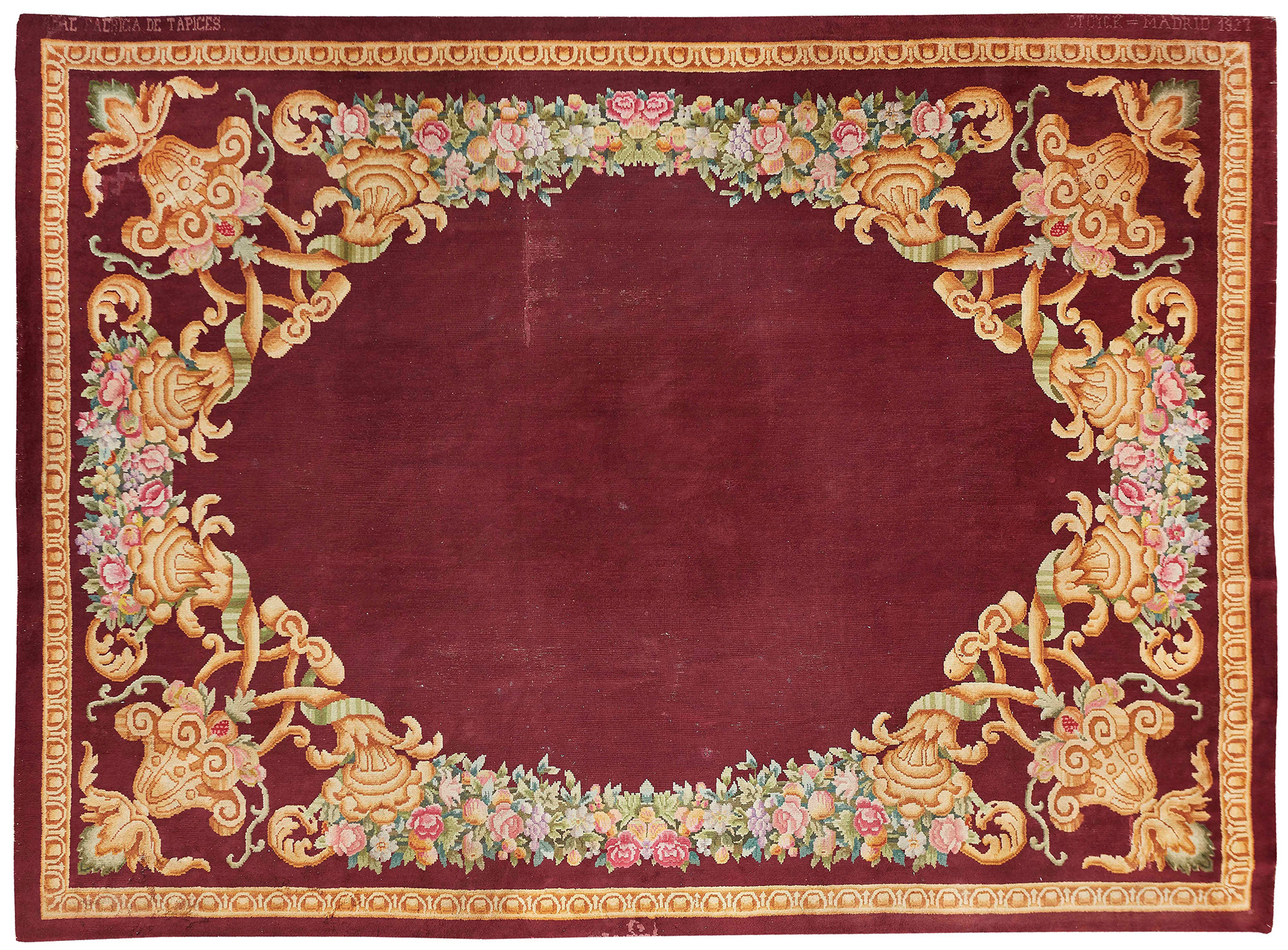 Lotto 137 | Savonnerie Spagna prima metà XX secolo campo bordeaux con cornice floreale,...