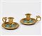 Coppia di bugie in bronzo dorato e malachite. Russia, Epoca primo Impero (1810 ca) Largh. 13,5 - Prof. 11 - Alt. 6 cm, Appartenuto alla collezione privata dell’antiquario fiorentino Giorgio Albertosi