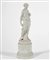 Figurina mitologica, Probabilmente Veneto, inizio del XIX secolo Porcellana biscuit. Marca: assente. Altezza cm 26,5. Conservazione: piccoli restauri e mancanze, , Su base a tronco di colonna poggia la giovane dea