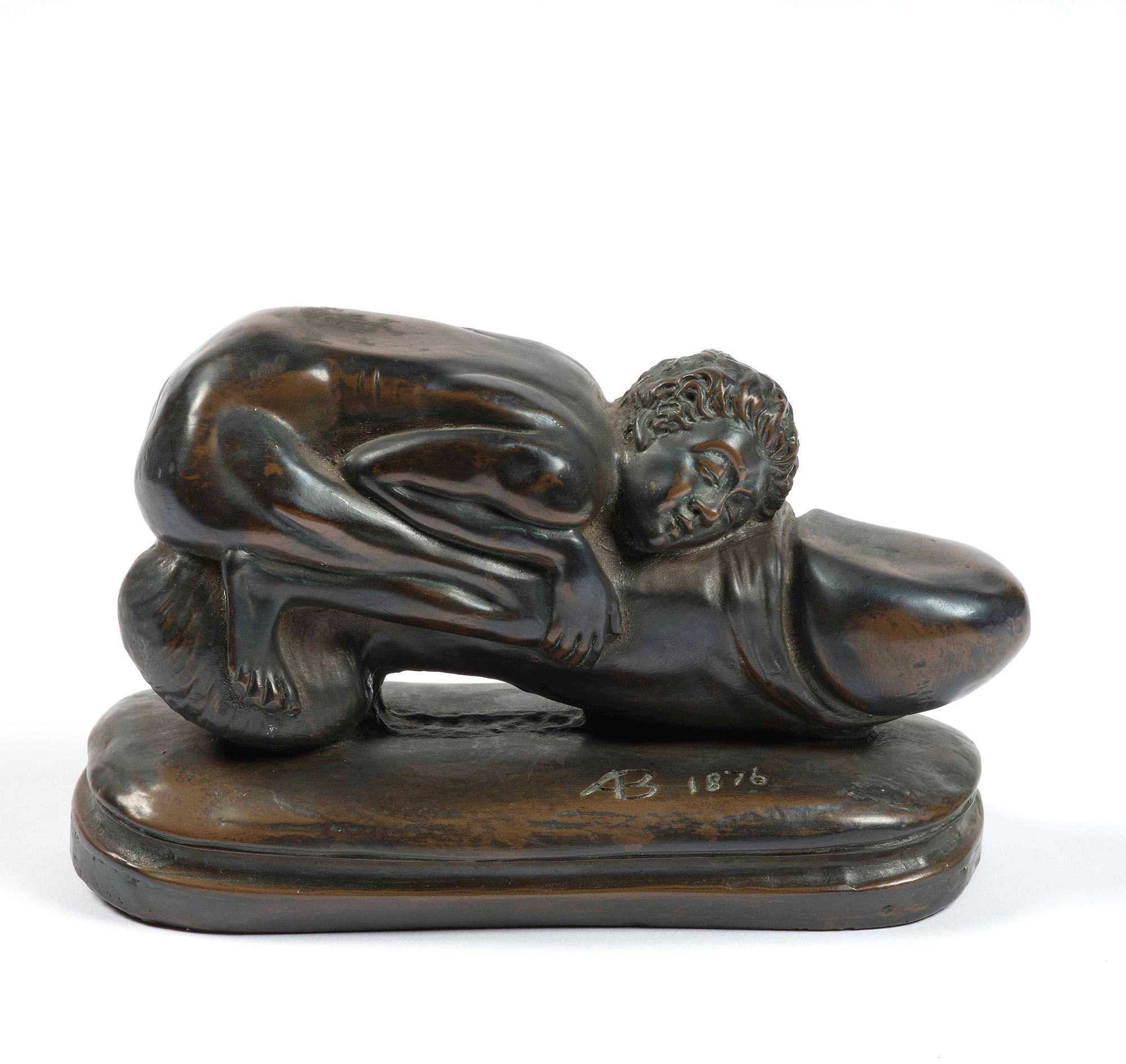 Fermacarte in bronzo patinato, firmato e datato AB 1876 A forma di figura...