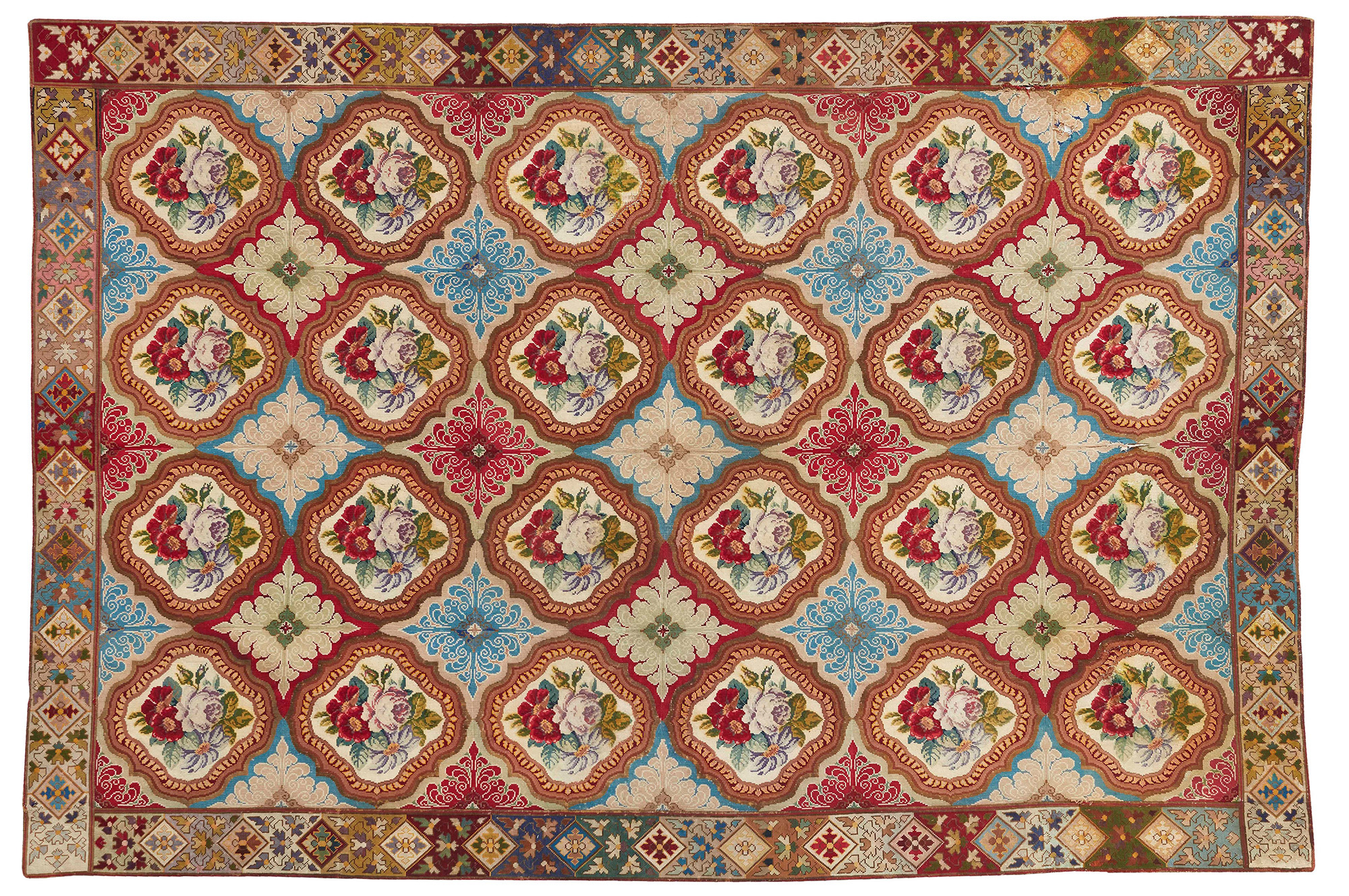 Piccolo punto Francia fine XIX secolo campo a rombi con decori geometrici, W. 310 - D. 210 cm, Raffaele Verolino, Modena