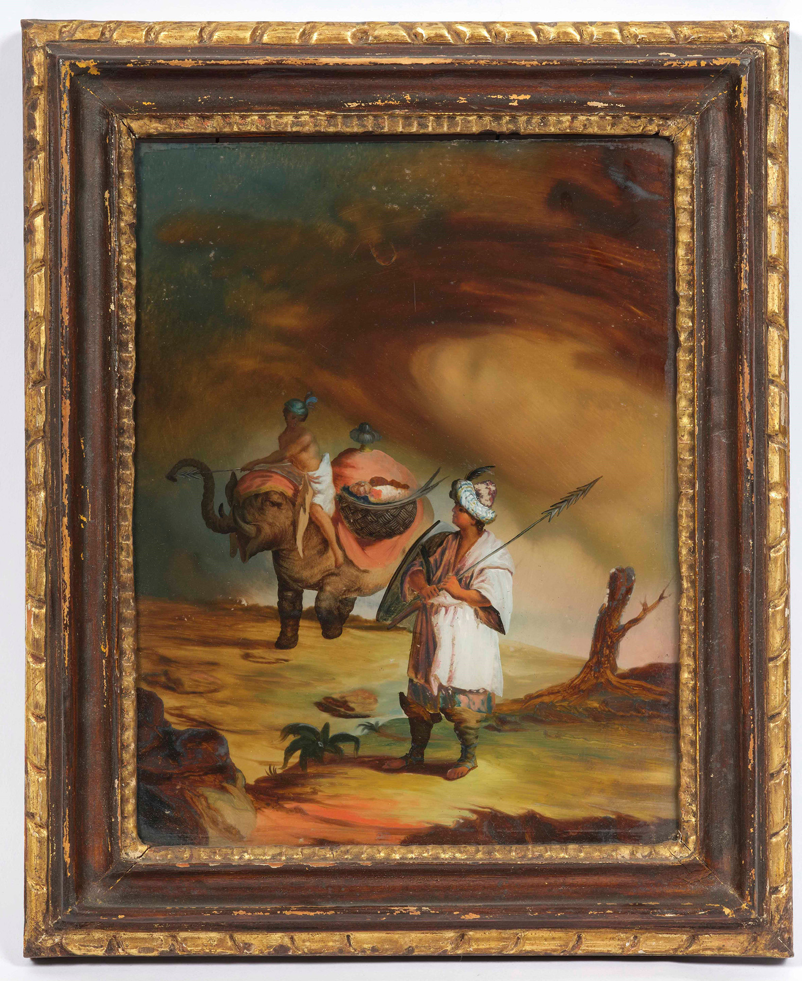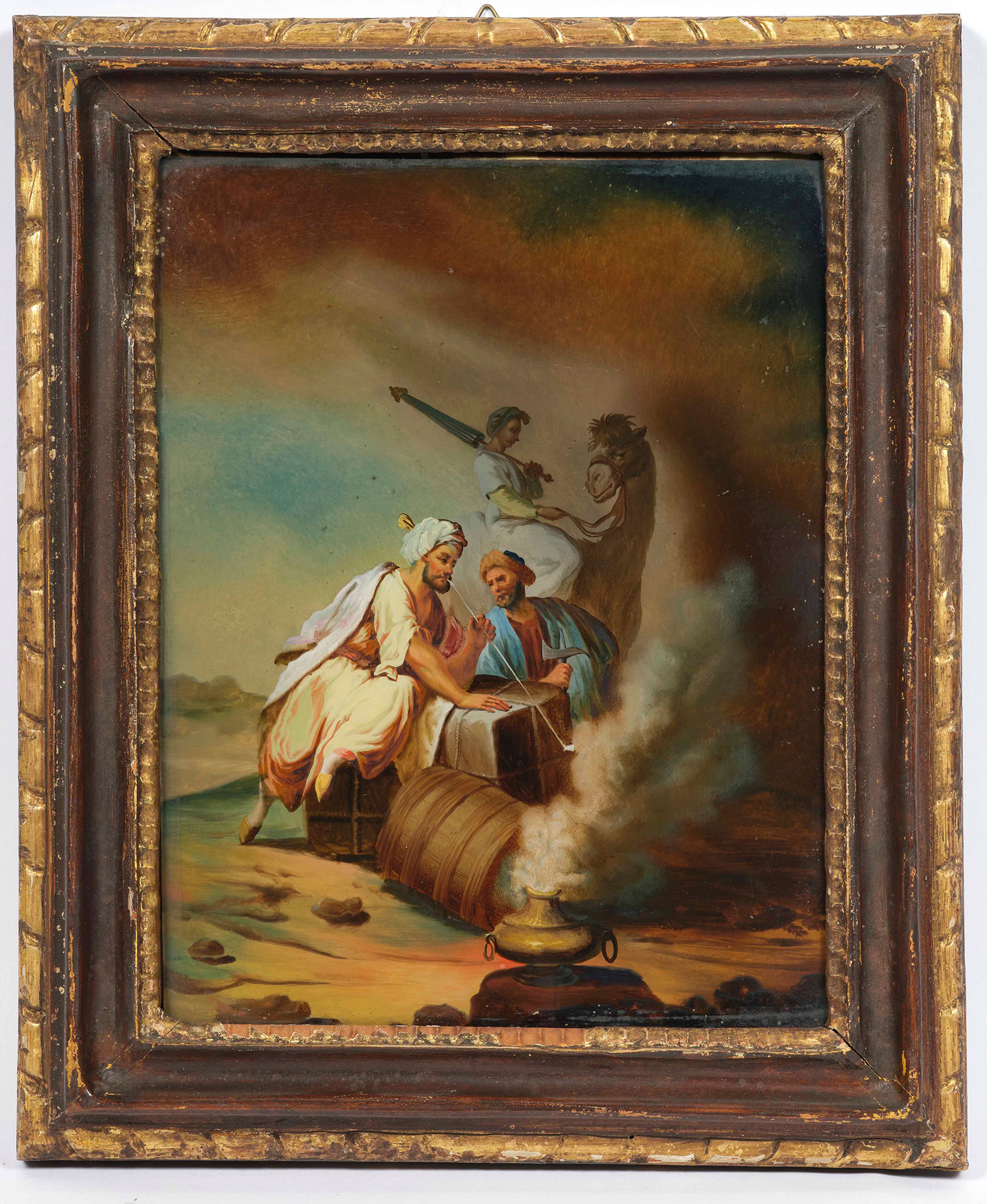 Allegorie dell'Asia, dell'America e dell'India Scuola della fine del XVIII secolo tre dipinti, olio su vetro, W. 20 - H. 25 cm, G&Q Fine Art, Milano