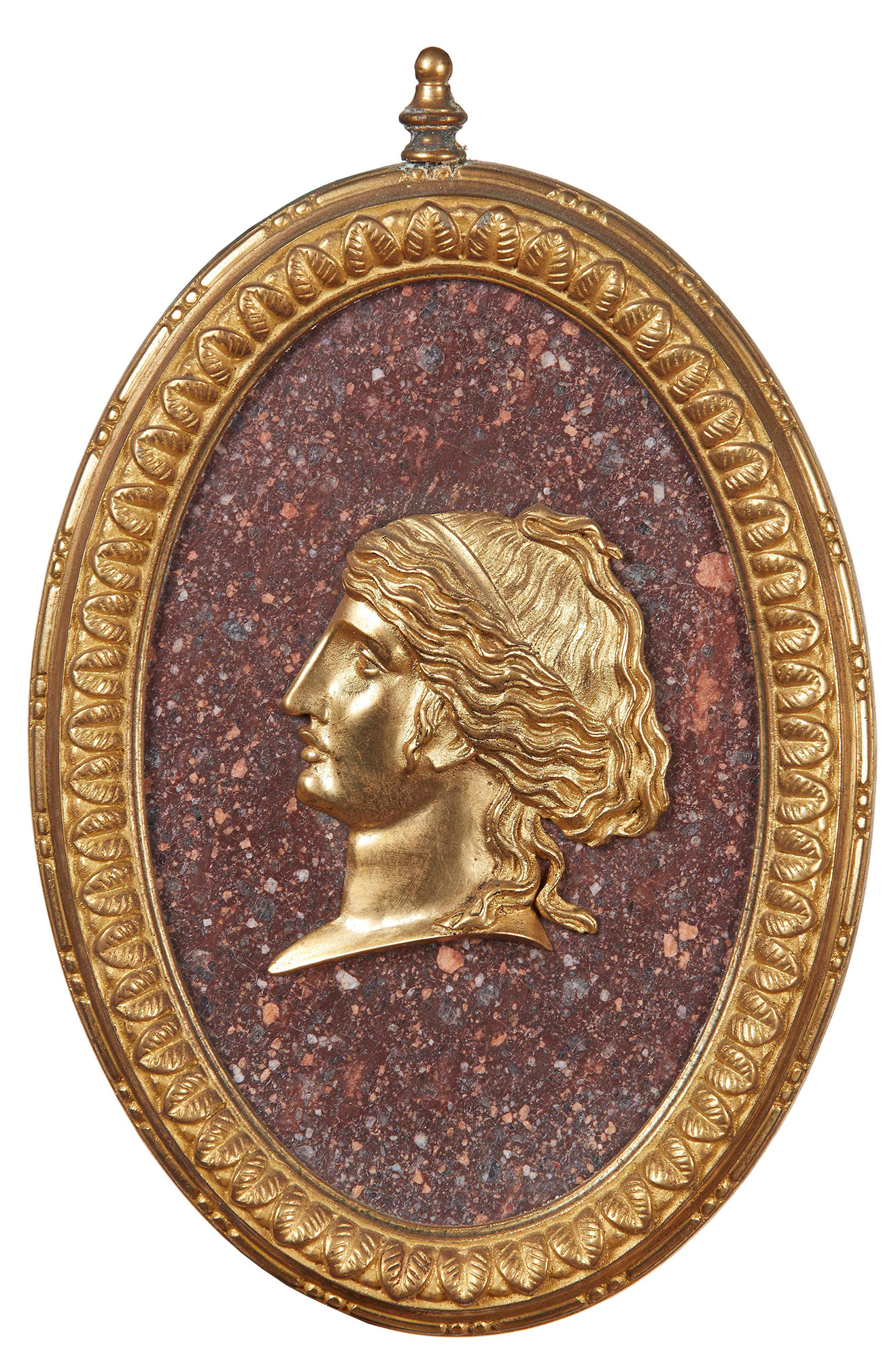 Lotto 236 | Coppia di cammei (Marte e Venere) in bronzo dorato. XIX secolo cornice ovale...