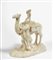 Gruppo di servitore con dromedario Veneto, (Este, manifattura Contiero?), XIX secolo Terraglia color crema. Marca: assente. Dimensioni: altezza cm 22,5; cm 22 x 12. Conservazione: scimmietta con vecchi restauri all’altezza della vita e delle braccia; restauri ad alcune dita di una mano del servitore e alla maniglia di una valigia; briglie mancanti; due felature al coperchio di una valigia; insignificanti sbeccature , , Gruppo plastico composto da dromedario con scimmietta sul dorso tra due valigie dal coperchio amovibile, guidato da giovane servitore africano. Il modello di questo gruppo scultoreo in terraglia è stato prodotto ad Este dalla manifattura Franchini. Il nostro è forse più tardo, probabilmente sfornato nella fabbrica Contiero (vedi il modello originario in G.Barioli, Mostra dell’Antica Ceramica di Este, catalogo della mostra 1960, fig.29). Nel 1939 alla storica mostra veneziana di Cà Rezzonico “Maioliche venete del Settecento” è stato esposto un esemplare simile e pubblicato sul relativo catalogo (G.Lorenzetti, Maioliche venete del Settecento, Venezia 1939, fig. 203), cm 21x12,5x23,5